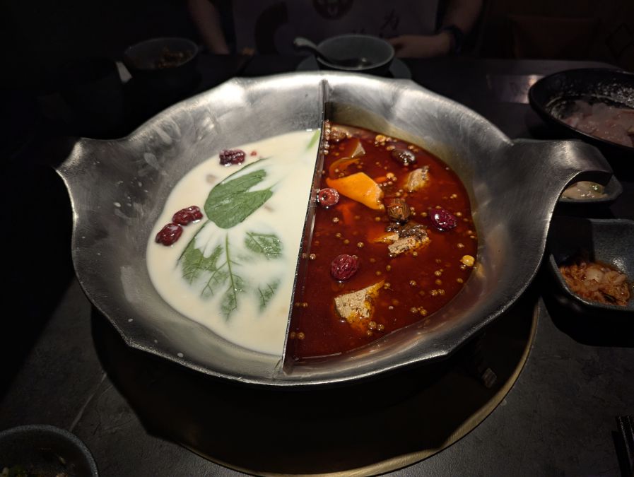 我們的鍋底選擇了台式麻辣鍋及港式胡椒豬肚雞鍋。
