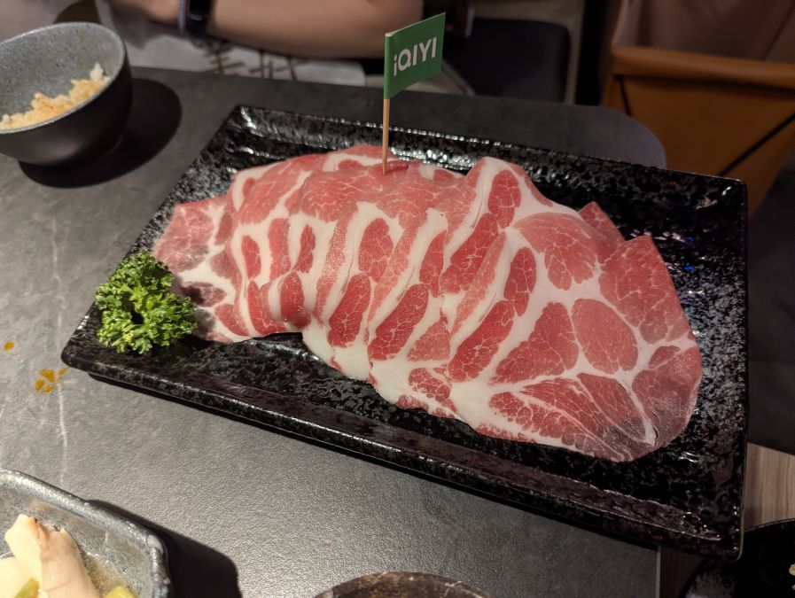 肉盤上我們點了台灣黑毛豬梅花肉,