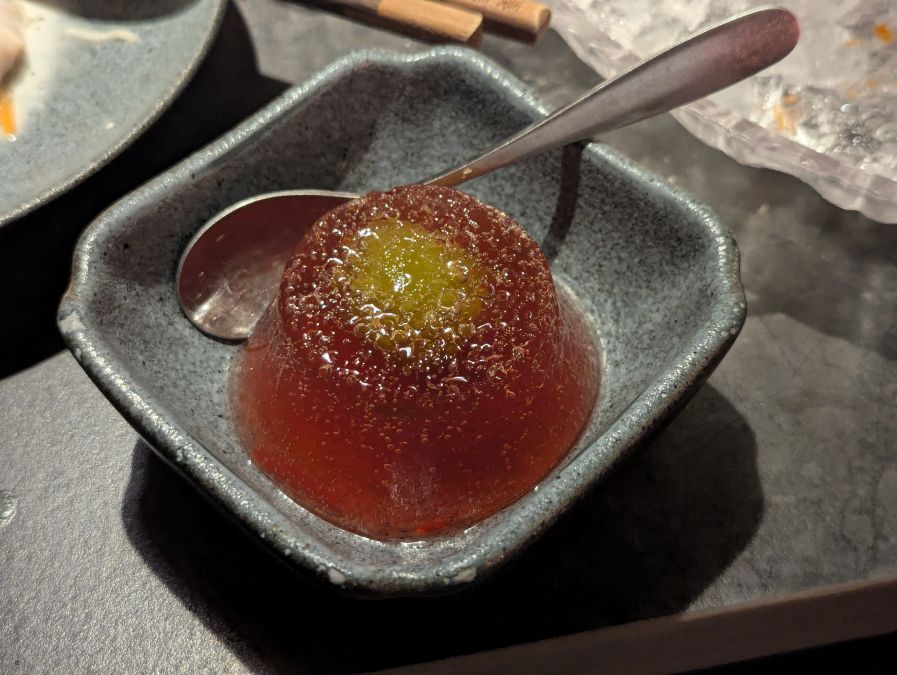 在最後還會提供一小杯解膩的冰沙及酸梅茶凍,