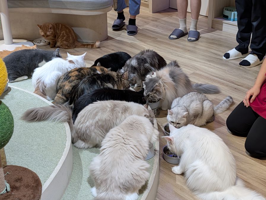 當時間差不多時,貓咪都會有共識的聚集到員工室的門口。