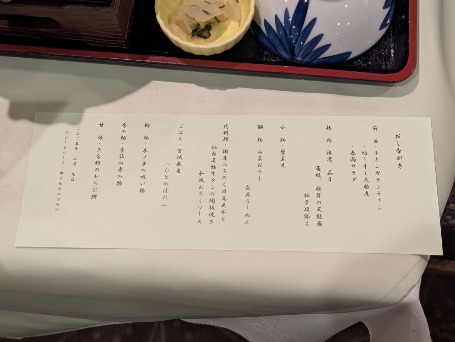櫃台人員先邀請我們至宴會廳進行會席料理的用餐。