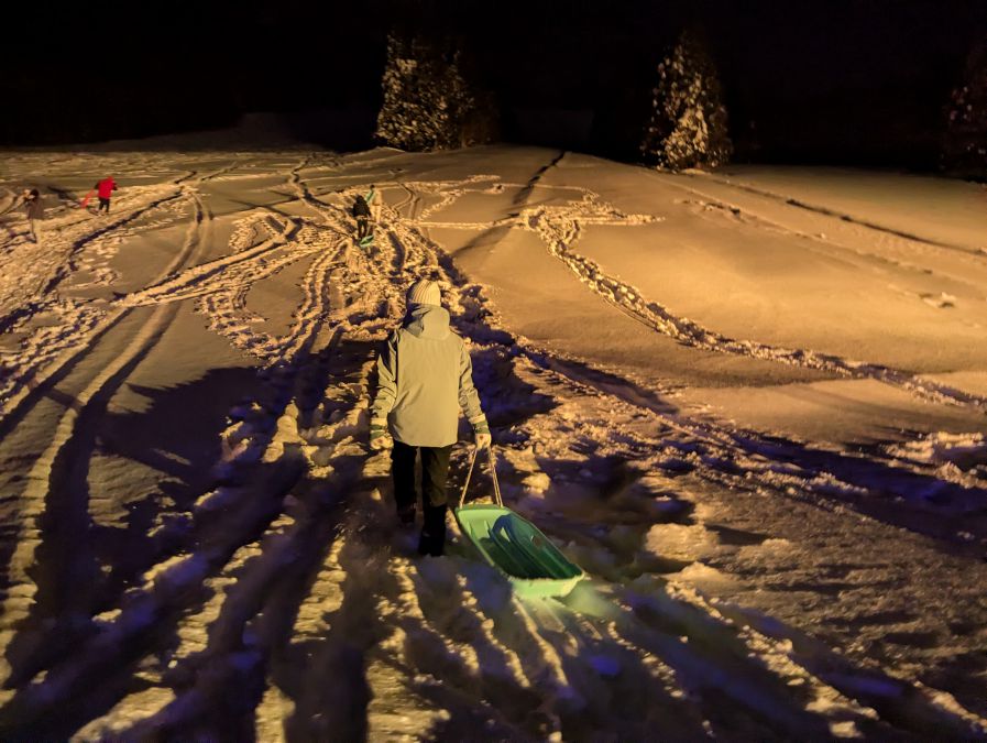 讓不會滑雪的住客也能體驗雪盆戲雪的樂趣。