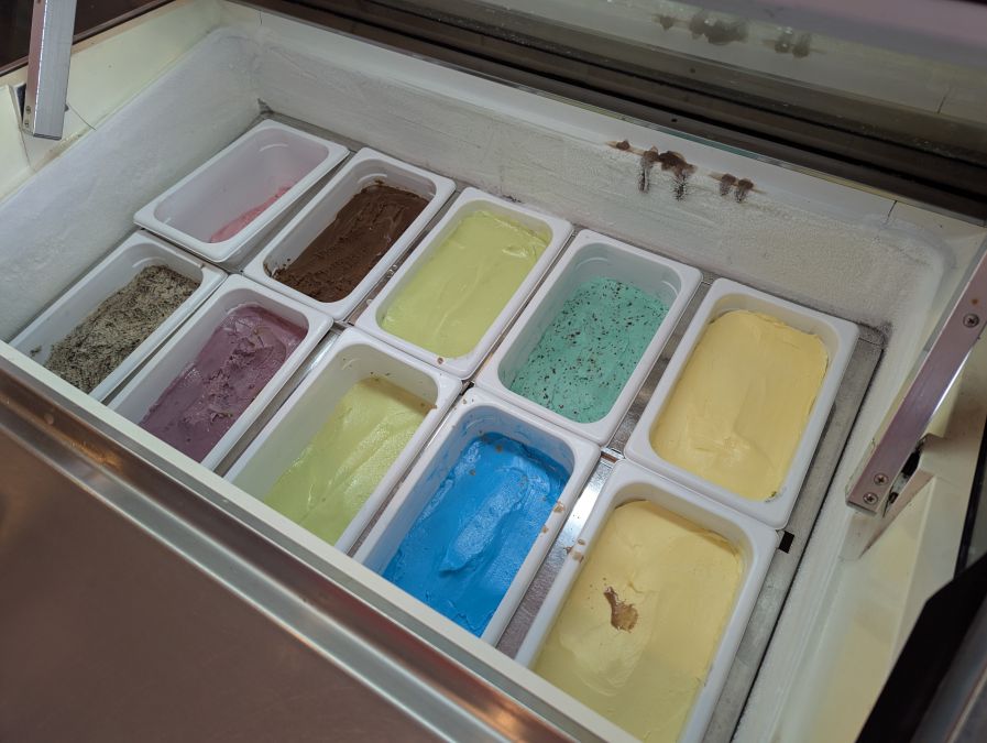 冰淇淋櫃裡則有 10 種口味的選擇,
