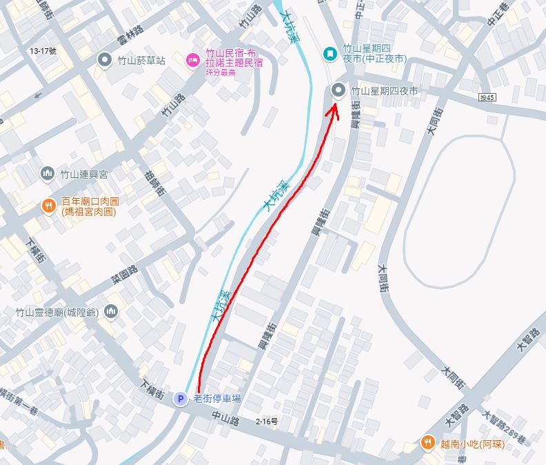 停好車後沿著大坑溪右側走一小段路就會看到夜市了。